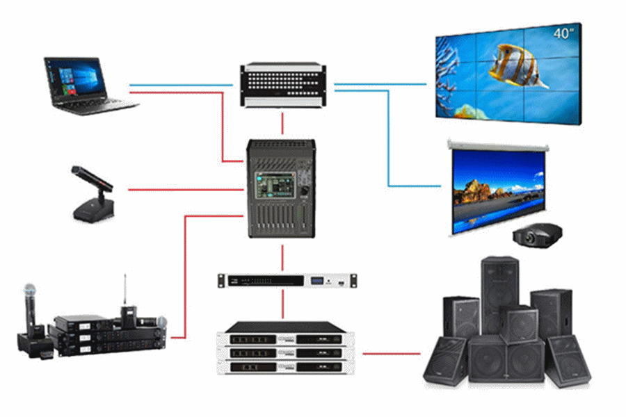 在設(she)計(ji)時重(zhong)點(dian)考慮揚聲器(qi)的(de)分布以及(ji)聲壓(ya)覆蓋的(de)均勻,配(pei)置(zhi)(zhi)(zhi)滿足娛樂活動大動態擴(kuo)聲的(de)設(she)備(bei),達(da)到愜意輕(qing)松(song)地娛樂的(de)目(mu)的(de)。因此擴(kuo)聲系(xi)統(tong)(tong)(tong)輸(shu)出(chu)功率要(yao)(yao)足夠(gou)(gou)、根據(ju)使(shi)用(yong)環(huan)境(jing)和實際使(shi)用(yong)方式(shi),在設(she)計(ji)中(zhong)預備(bei)一(yi)部(bu)分動態功率;音響系(xi)統(tong)(tong)(tong)高頻(pin)明亮而(er)不夸張、中(zhong)頻(pin)圓(yuan)潤同時富有質感、低音較松(song)散(san)而(er)不渾(hun)濁是其基本要(yao)(yao)求;同時系(xi)統(tong)(tong)(tong)能夠(gou)(gou)盡可能地對聲音美化修(xiu)飾并(bing)(bing)掩(yan)蔽(bi)人(ren)聲缺陷。配(pei)置(zhi)(zhi)(zhi)數(shu)(shu)模調音臺及(ji)音頻(pin)處理(li)(li)器(qi)作音頻(pin)數(shu)(shu)據(ju)的(de)處理(li)(li)及(ji)分配(pei)工作,并(bing)(bing)設(she)置(zhi)(zhi)(zhi)數(shu)(shu)個(ge)(ge)應用(yong)模式(shi)方便調取。視(shi)頻(pin)設(she)備(bei)根據(ju)環(huan)境(jing)可選用(yong)投(tou)影、LED屏、LCD拼接屏、會(hui)議一(yi)體(ti)機、電(dian)視(shi)機,一(yi)般配(pei)置(zhi)(zhi)(zhi)一(yi)個(ge)(ge)大屏幕(mu)顯示、數(shu)(shu)個(ge)(ge)近場(chang)小(xiao)屏幕(mu)輔助,組成(cheng)多(duo)窗口、多(duo)畫面(mian)的(de)顯示系(xi)統(tong)(tong)(tong),通過視(shi)頻(pin)矩陣(zhen)系(xi)統(tong)(tong)(tong)作分配(pei)處理(li)(li)。先進合(he)理(li)(li)的(de)燈光(guang)系(xi)統(tong)(tong)(tong)配(pei)置(zhi)(zhi)(zhi),搭載專業舞(wu)臺燈具和氛圍(wei)器(qi)材,是保證舞(wu)臺燈光(guang)照明系(xi)統(tong)(tong)(tong)總體(ti)設(she)計(ji)目(mu)標得以實現的(de)前提條件。燈具、燈位(wei)(wei)的(de)合(he)理(li)(li)配(pei)置(zhi)(zhi)(zhi)是充分體(ti)現燈光(guang)設(she)計(ji)水平的(de)重(zhong)要(yao)(yao)標志。舞(wu)臺燈光(guang)常用(yong)的(de)有面(mian)光(guang)、側光(guang)、頂光(guang)、逆光(guang)、追光(guang)等區位(wei)(wei)構成(cheng)全(quan)方位(wei)(wei)布光(guang)陣(zhen)列,舞(wu)臺各部(bu)位(wei)(wei)均有布光(guang)點(dian),杜絕死(si)區,可靈活多(duo)變(bian)按需(xu)組合(he)。遠程視(shi)頻(pin)會(hui)議、中(zhong)控智能、聲學裝(zhuang)飾等更多(duo)功能實現根據(ju)項(xiang)目(mu)實際需(xu)求設(she)計(ji)。